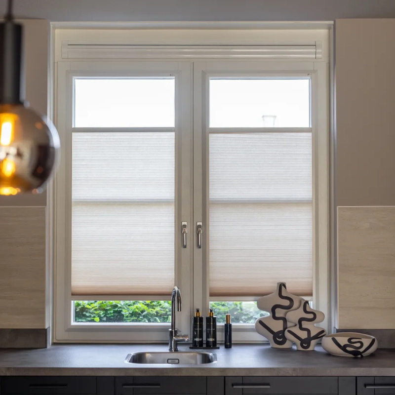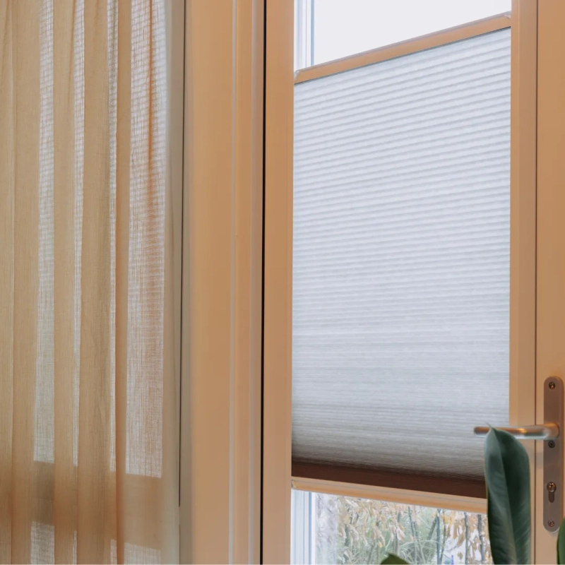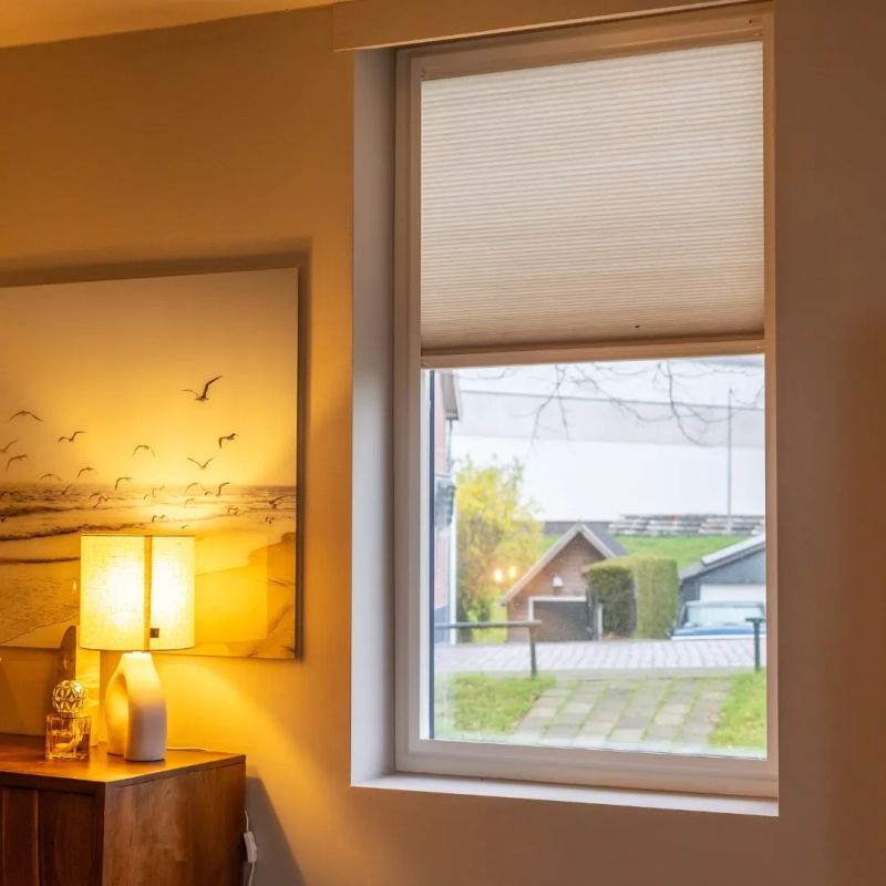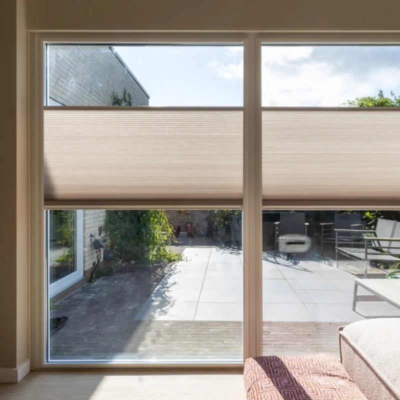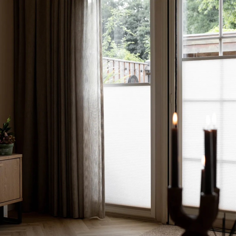 De Splendid Pliss is een stijlvolle en praktische oplossing voor ramen. Top-down/bottom-up bediening zorgt voor optimale lichtregeling en privacy. Het aluminium frame sluit naadloos aan op het kozijn en kan eenvoudig zonder boren geplaatst worden, voor een strak en modern interieur.