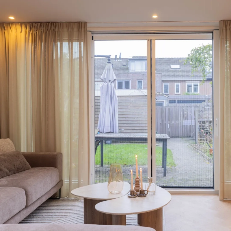 In aflevering 12 van De Grote Huisverbouwing gaat het team langs bij Mirjam en Arjen in Zoetermeer. Samen met hun twee kinderen, en met een derde op komst, was het huis toe aan meer rust, overzicht en functionaliteit. De woonwens lag vooral bij extra opbergruimte, een gezellige zithoek voor het gezin en een eigen DJ-hoek voor Arjen. Het team wist deze wensen te vertalen naar een warm en praktisch interieur waarin ruimte is voor ontspanning én qualitytime. KeJe droeg bij aan deze make-over met elektrische houten jaloezieën met Motion Bluetooth bediening in lamelkleur 23137, waarmee licht en privacy eenvoudig geregeld kunnen worden. Daarnaast zorgt de dubbele Originele Plisséhordeur in de dag voor frisse lucht in huis, zonder insecten, en een fijne verbinding tussen binnen en buiten. Een interieur dat meebeweegt met het gezin en klaar is voor alles wat komen gaat.
