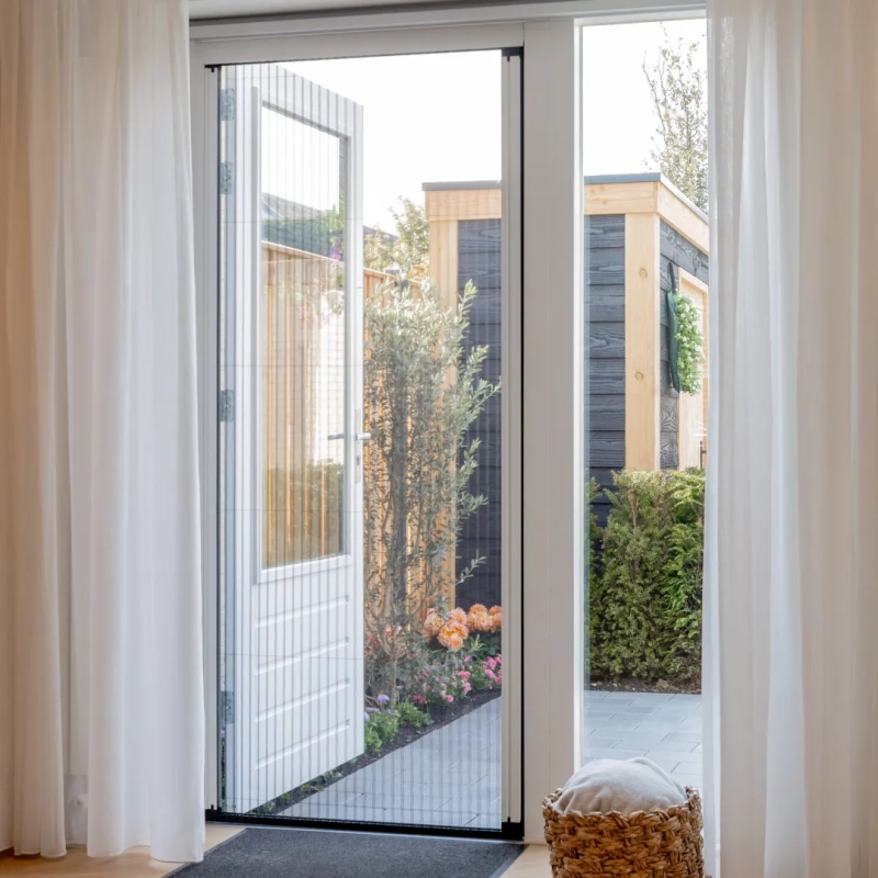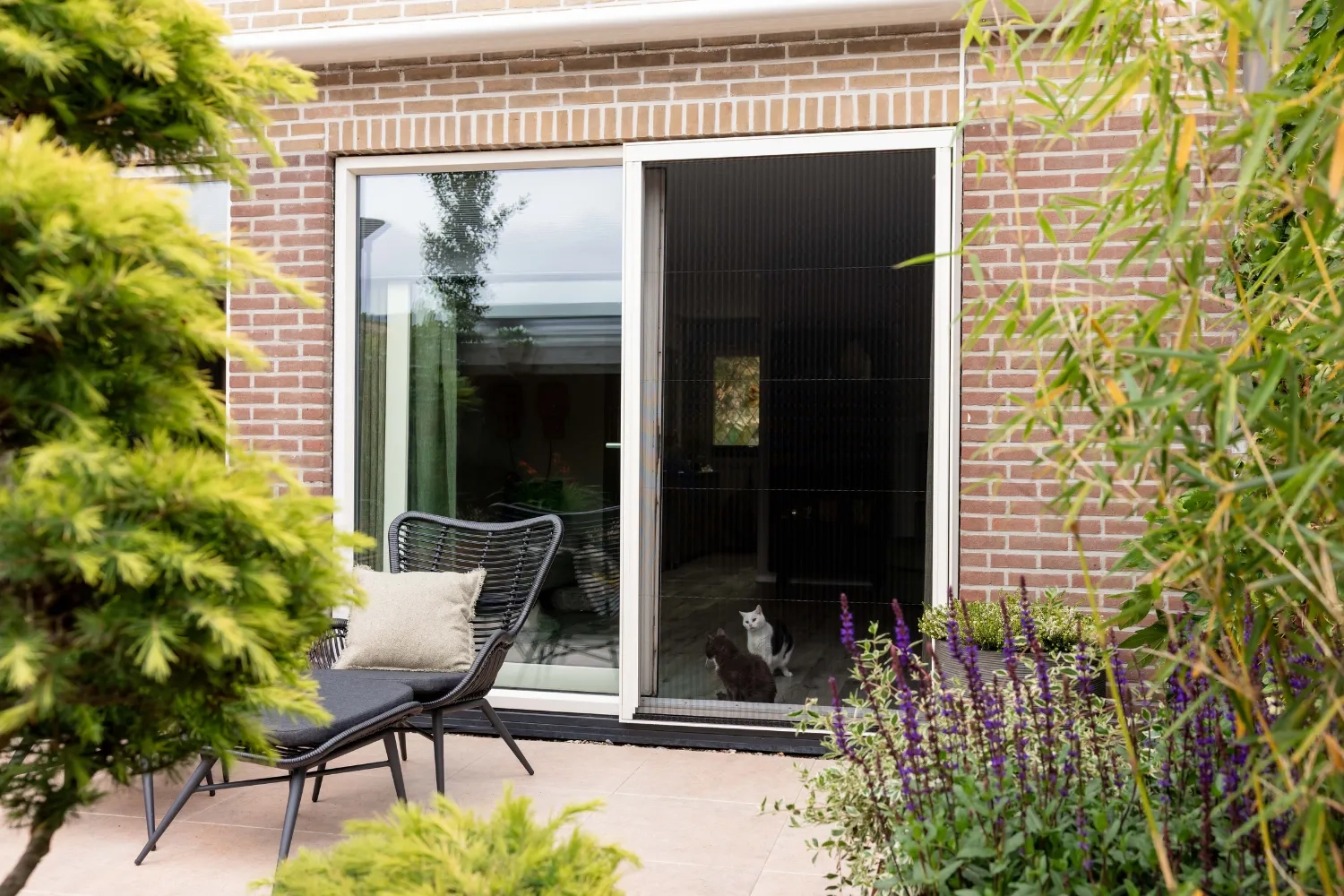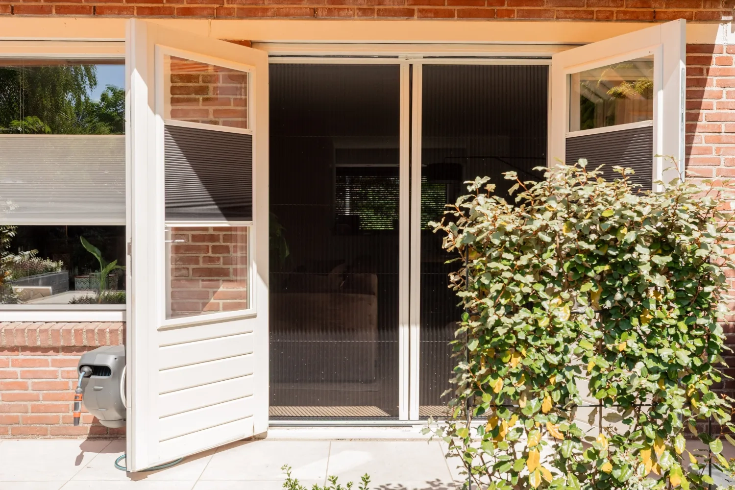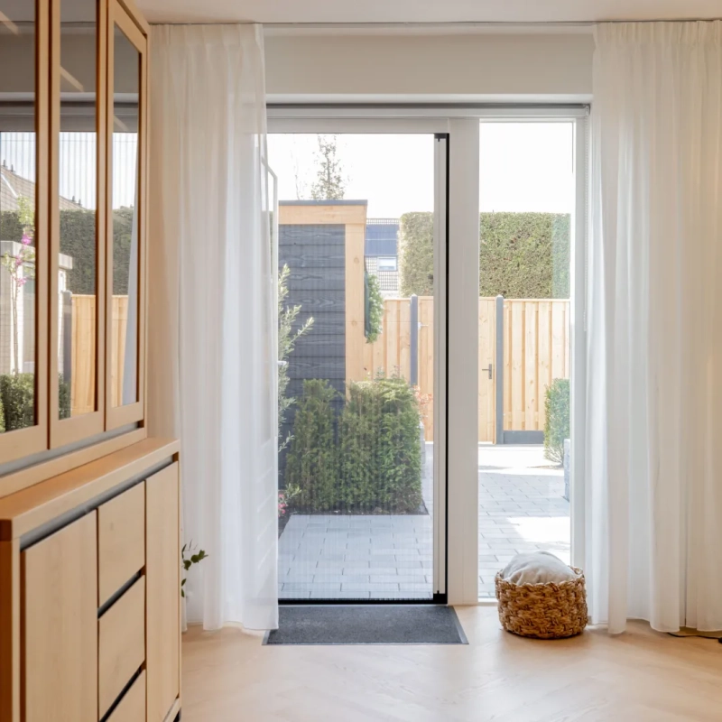 De Originele plisséhordeur maakt het mogelijk om de deuren open te zetten en frisse lucht binnen te laten, zonder dat insecten de woning binnenkomen. Het plissédoek schuift soepel open en dicht en blijft staan waar je hem loslaat. Stijlvol, functioneel en perfect om buiten écht bij binnen te betrekken.