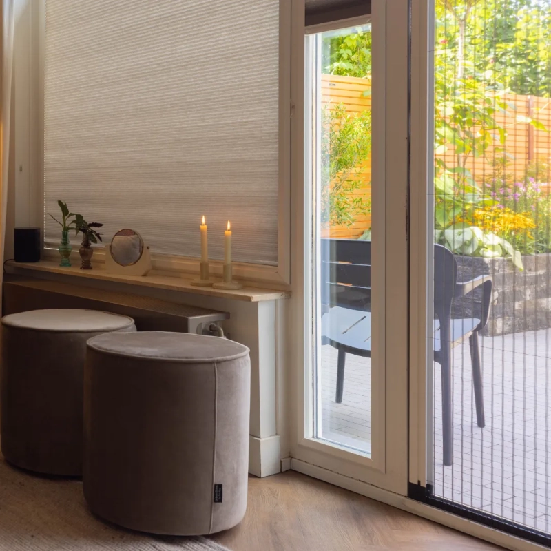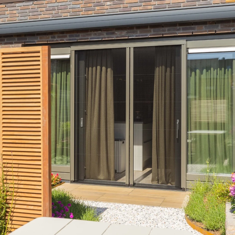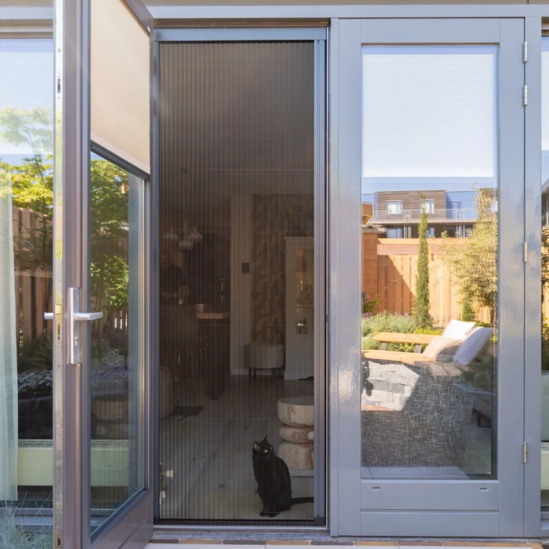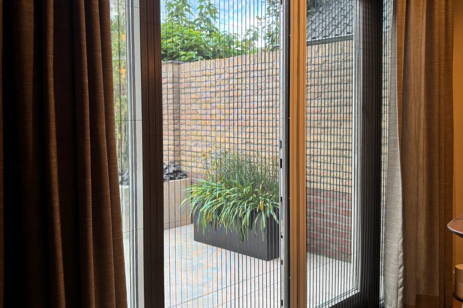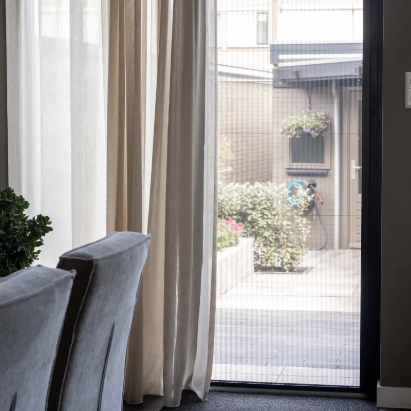 De Originele plisséhordeur maakt het mogelijk om de deuren open te zetten en frisse lucht binnen te laten, zonder dat insecten de woning binnenkomen. Het plissédoek schuift soepel open en dicht en blijft staan waar je hem loslaat. Stijlvol, functioneel en perfect om buiten écht bij binnen te betrekken.