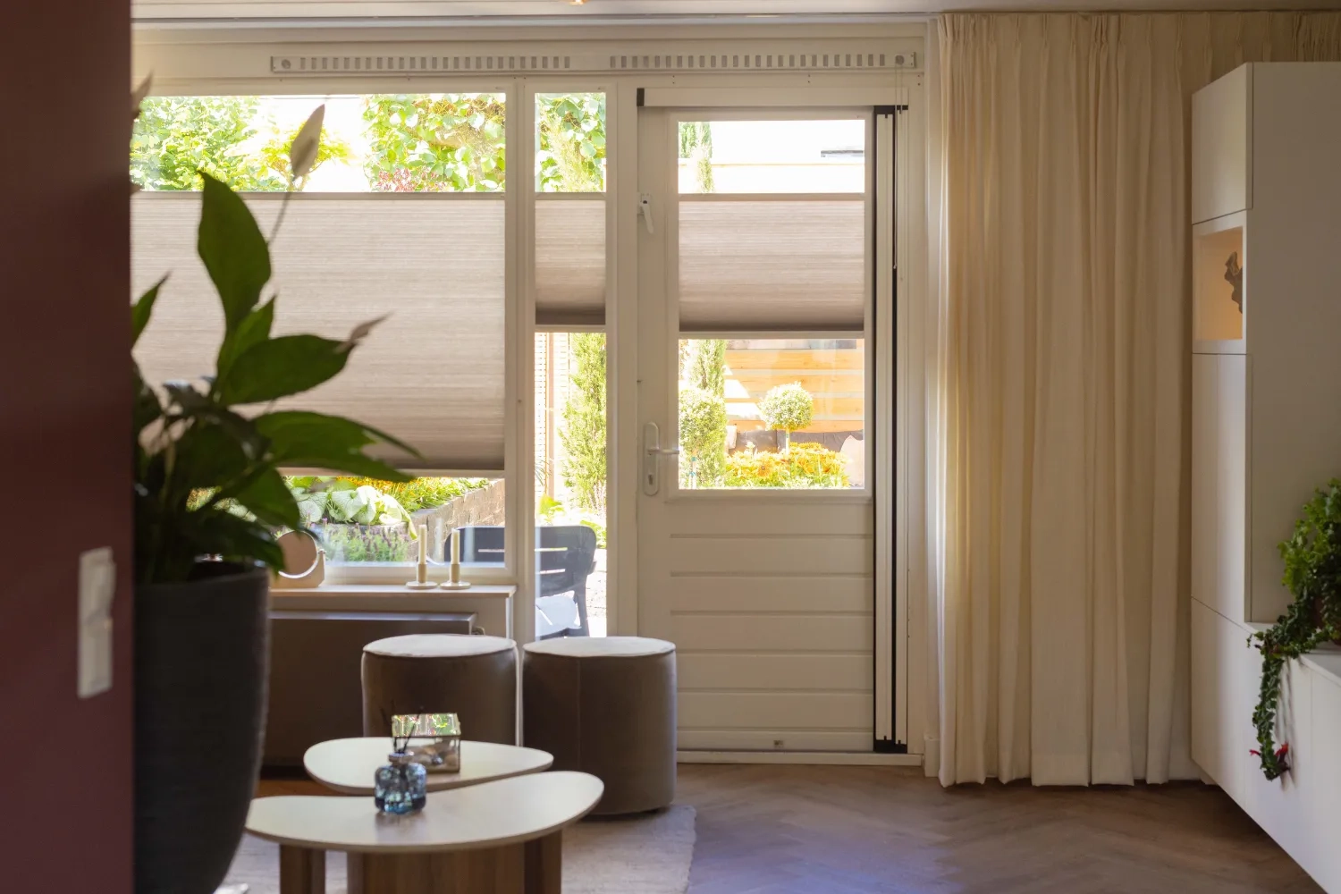 In aflevering 3 van het nieuwe seizoen van De Grote Tuinverbouwing ging Djamilla langs bij Fien en Joella. Hun huis was nog erg wit en een beetje saai, dus de wens was om kleur en sfeer toe te voegen – zonder dat het te druk zou worden. Met de juiste keuzes in verf, behang én raamdecoratie kreeg de woning meer warmte en karakter. De Splendid Pliss van KeJe brengt daarbij rust en een stijlvolle uitstraling, terwijl de Originele plisséhordeur ervoor zorgt dat binnen en buiten op een natuurlijke manier met elkaar verbonden worden.