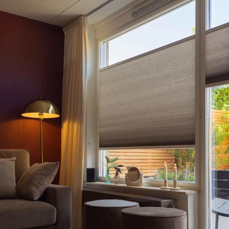 De Splendid Pliss is een plisségordijn in een strak frame, eenvoudig te monteren zonder boren of schroeven. In duo-stof D75008-25 voegt het een warme tint toe aan het interieur, terwijl je zelf de lichtinval en privacy bepaalt. Zo wordt raamdecoratie niet alleen praktisch, maar ook bepalend voor de sfeer in huis.