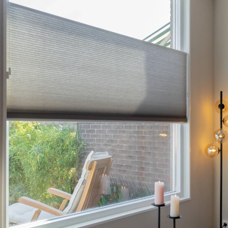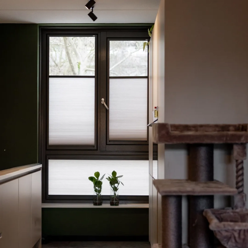 De Splendid Pliss sluit met zijn aluminium frame naadloos aan op het raam en is eenvoudig te plaatsen zonder te boren of schroeven. Het zorgt voor een moderne, strakke look en optimale isolatie. Ideaal voor een comfortabel en sfeervol huis.