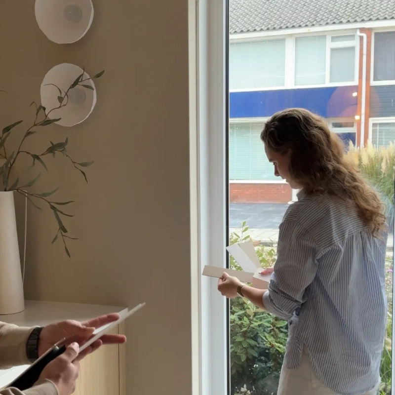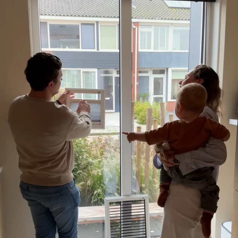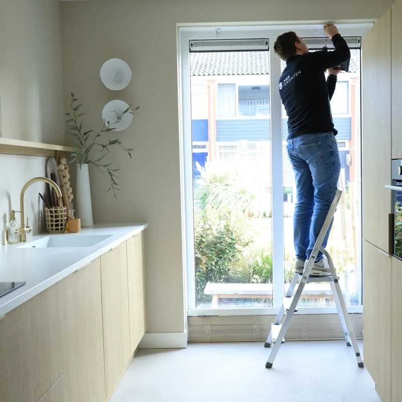 Meten op locatie: Ons team kwam eerst bij Alena thuis om alle ramen nauwkeurig op te meten. Zo garandeerden we een perfecte pasvorm.