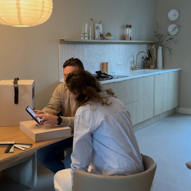 Professionele montage: Ons team plaatste de jaloezieën nauwkeurig en zorgde voor een strak en luxe resultaat dat volledig geïntegreerd is in het interieur. Tim legt Alena daarnaast nog even uit hoe je de houten jaloezie kan bedienen met je smartphone, ideaal natuurlijk!