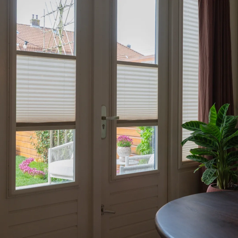 De Splendid Pliss combineert strak design met gebruiksgemak: het aluminium frame sluit naadloos op het kozijn aan en kan eenvoudig zonder boren of schroeven geplaatst worden. Met de top-down/bottom-up bediening bepaal je zelf de ideale balans tussen licht en privacy.