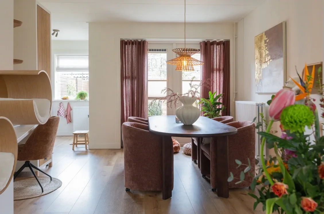 Deze week gaat het team van De Grote Tuinverbouwing langs bij Lynn en Thierry. Sinds mei vorig jaar wonen ze in hun nieuwe huis, waar ze het interieur al grotendeels hebben aangepakt. Toch ontbreekt er nog iets aan het totaalplaatje. Binnen legt Lynn aan Djamilla uit dat het interieur momenteel vrij eentonig is door het gebruik van één kleur. Hierdoor voelt het geheel wat veilig aan en mist het de verbinding tussen de verschillende ruimtes. Ze wil graag meer warmte en kleur toevoegen, al vindt ze het spannend om die stap te zetten. De basis mag rustig blijven, met zachte beigetinten op de muren en het plafond, maar ze is wel toe aan meer sfeer en een persoonlijkere uitstraling. De op maat gemaakte raamdecoratie van KeJe, uitgevoerd in de gekozen DUO-stof, kan daarbij helpen door extra diepte, warmte en een gezellige uitstraling aan het interieur toe te voegen