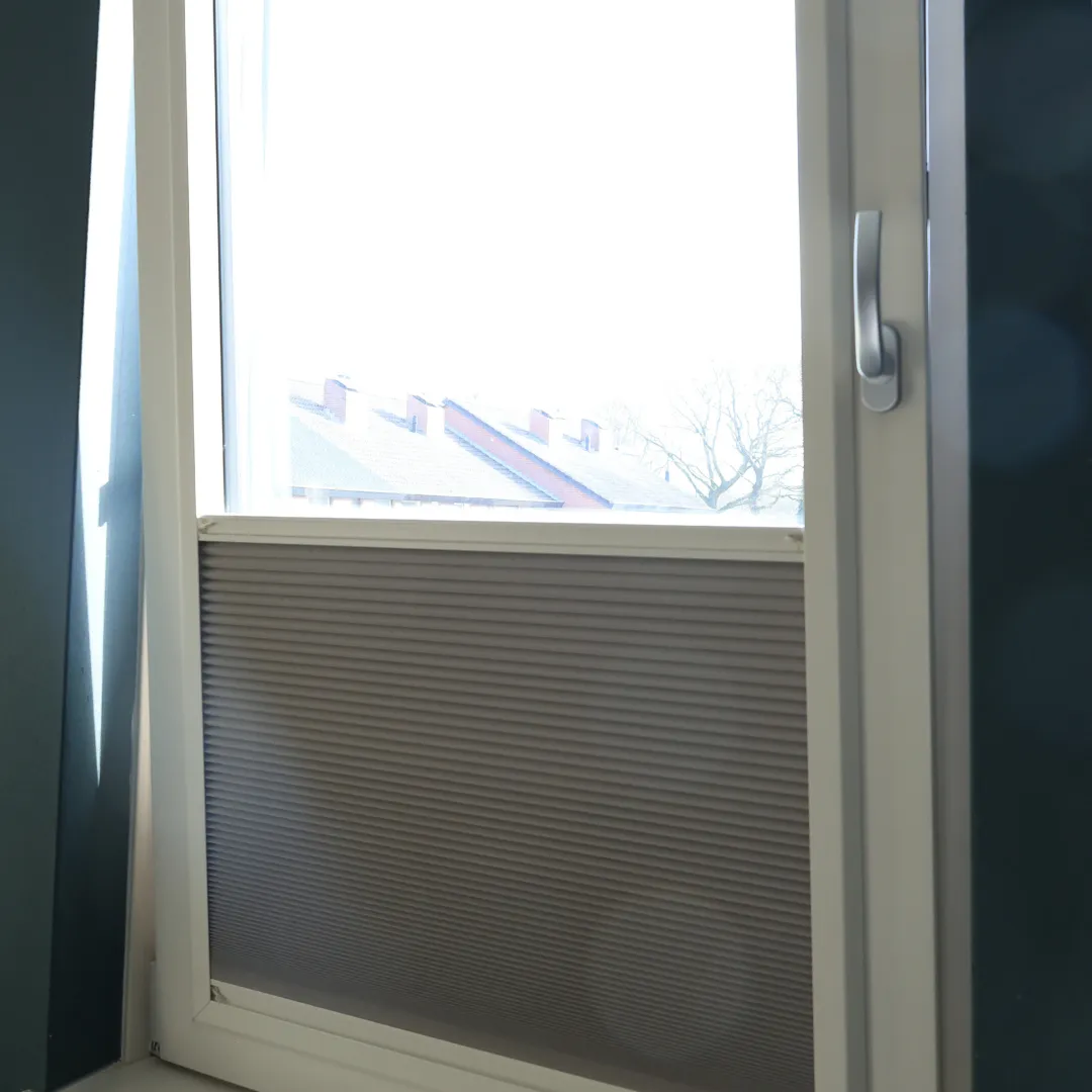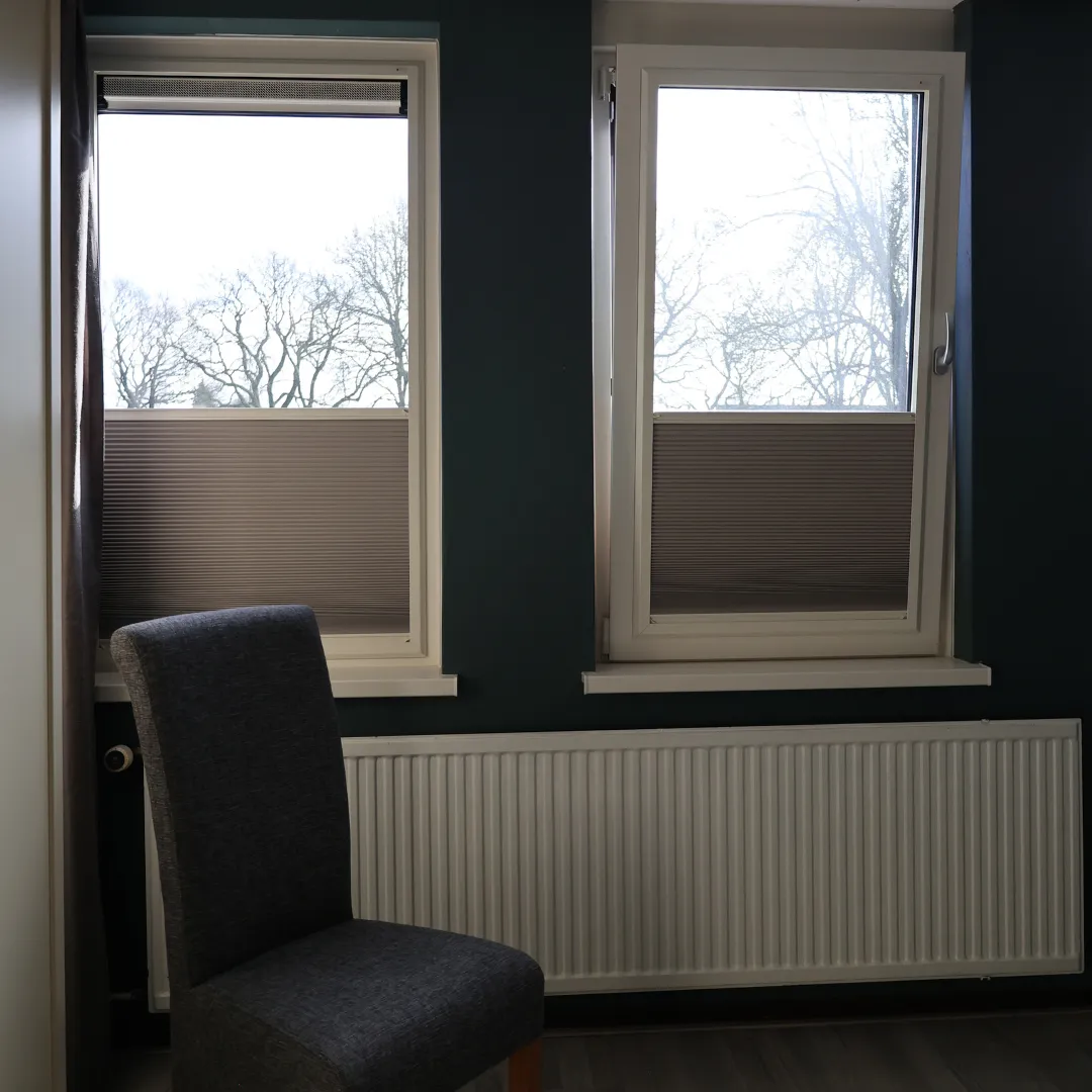 De keuze viel voor Ruud en Jannie op de Splendid Pliss. De Splendid Pliss van KeJe is een elegant plisségordijn geïntegreerd in een slank aluminium frame, dat eenvoudig gemonteerd wordt zonder boren of schroeven, dankzij het magneet- en staalbandsysteem. Je kunt het gordijn flexibel bedienen met de top-down/bottom-up functie, waardoor je zelf bepaalt hoeveel licht je binnenlaat en wanneer je privacy wilt. Dankzij de grote keuze uit meer dan 120 verschillende stoffen, van lichtdoorlatend tot volledig verduisterend, is dit model ideaal voor de wensen van Ruud en Jannie.