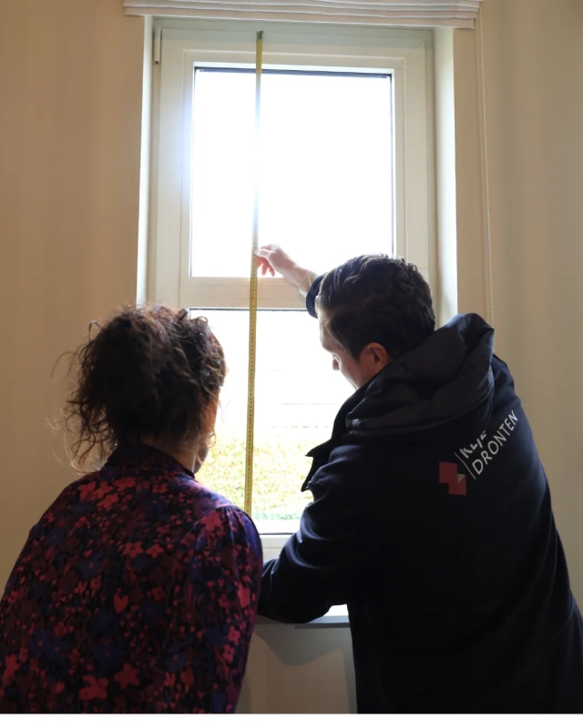 Meten is weten, en dat bleek ook bij Sientje. Onze vertegenwoordiger in Dronten kwam bij haar thuis om alle ramen nauwkeurig op te meten. En wat bleek? Twee ramen die er op het oog identiek uitzagen, hadden toch een verschil in lengte. Niet alleen in één kamer, maar in alle slaapkamers. Een belangrijke les: ga er nooit zomaar vanuit dat alle ramen dezelfde afmetingen hebben.