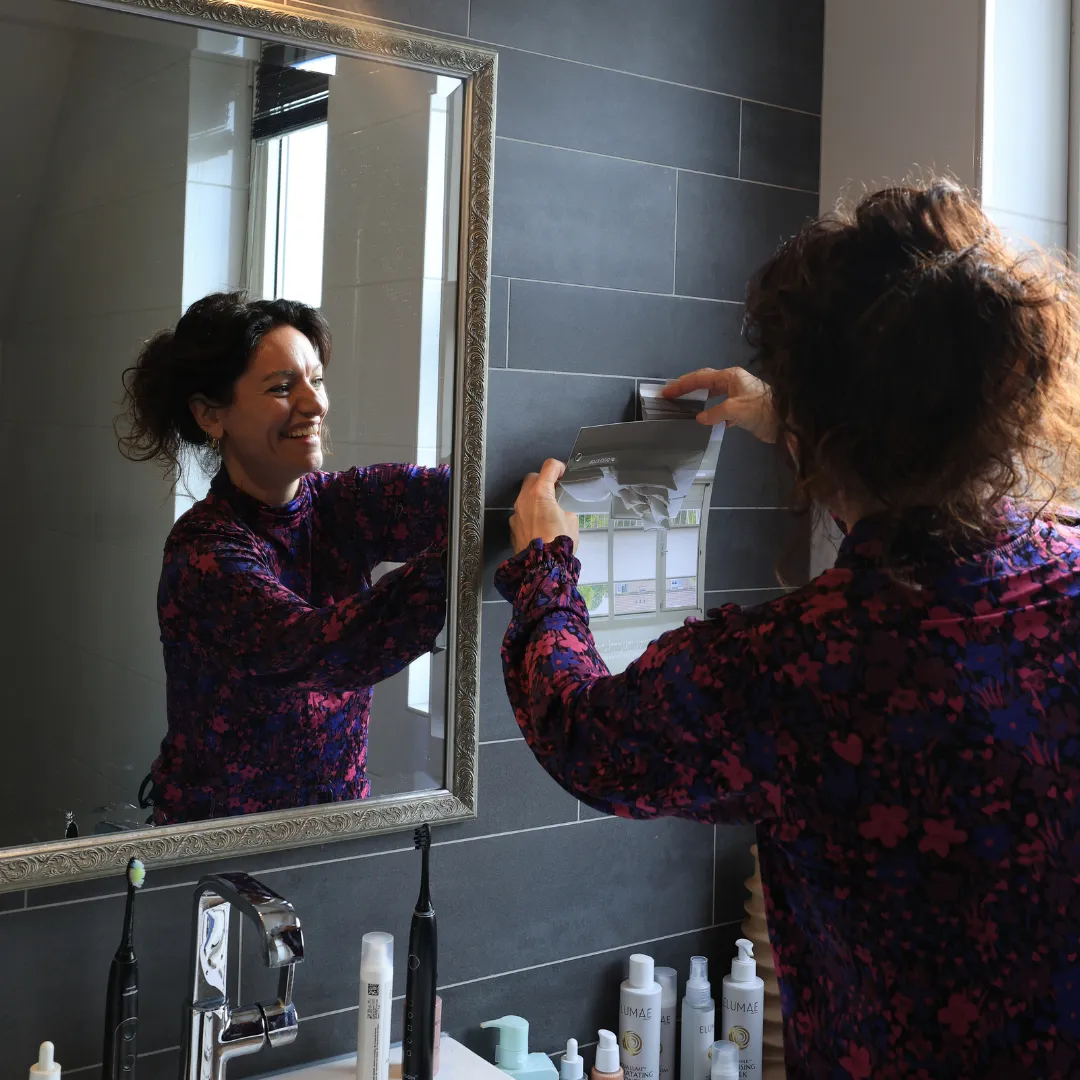 Omdat eerdere bewoners in het kozijn hadden geboord, waren er blijvende gaten zichtbaar. De Splendid Pliss biedt hiervoor de perfecte oplossing: het aluminium frame wordt namelijk volledig zonder boren of schroeven op het raam bevestigd. Dankzij het staal- en magneetbandsysteem blijft het frame stevig op zijn plek, zelfs wanneer het raam wordt geopend of gekanteld. Bovendien is de raamdecoratie op ieder moment eenvoudig afneembaar, wat handig is tijdens het schoonmaken.